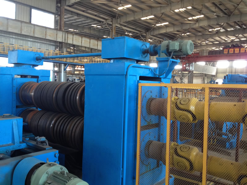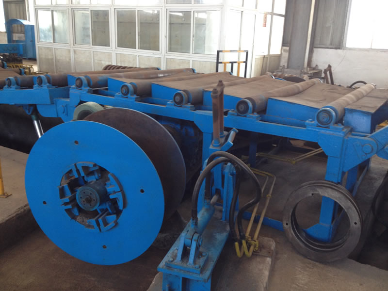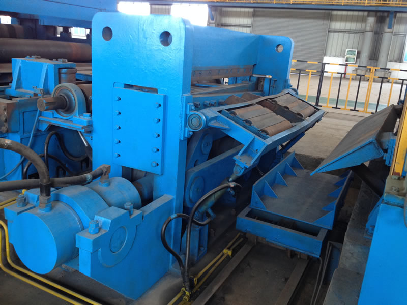 本设备有开卷、夹送初矫、纵剪、张力、收卷等主要部件组成。设备工作时钢卷上好开卷机后,压引钢板进夹送初矫经剪切板头后,过渡调节对中进入纵剪机进行纵剪分条,分条后带钢经活套过渡进入欲分料张力站,最后由收卷机卷取成带钢卷,经打包后由卸料小车输送出生产线。